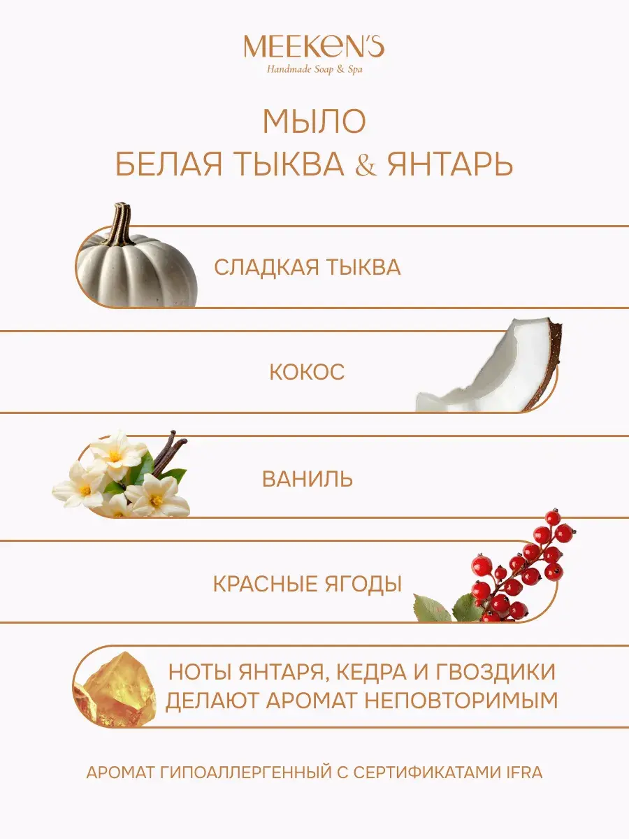 Подарите себе и своим близким роскошный уход с нашим натуральным мылом ручной работы "Белая Тыква и Янтарь"! Это оригинальное парфюмированное мыло – прекрасный подарок для женщин и мужчин на любой день: будь то день рождения, 8 марта, 23 февраля или просто в знак внимания. Натуральный состав: Только лучшие ингредиенты для здоровья и красоты вашей кожи.